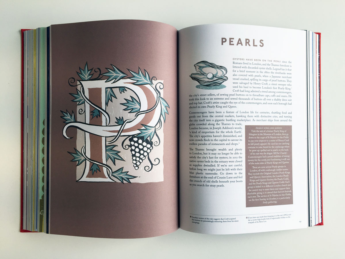 Written by Henry Eliot and Matt Lloyd-Rose, Curiocity is divided into 26 chapters, one for each letter of the alphabet, and lists facts about the city’s history alongside details of interesting places to visit and things to do. Each chapter explores a different aspect of London – there’s one on Pearls, on Knowledge (not just ‘the knowledge’ but universities and museums) and the Isles that dot the Thames Estuary – and features an illustrated map at its centre.